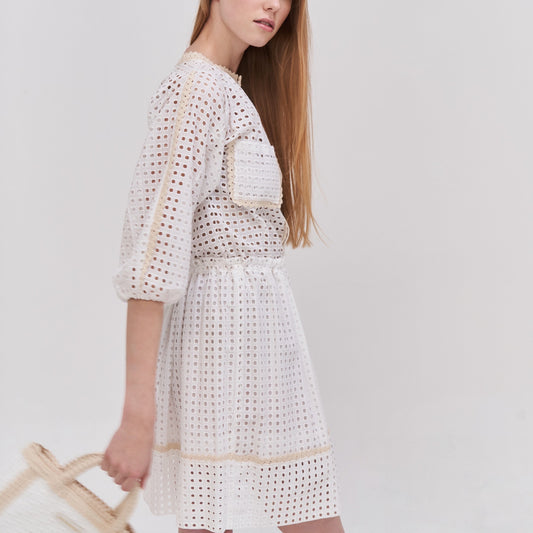 Nicht verfügbarKleid mit Lochstickerei